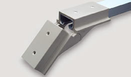 Las secciones del riel con bisagras están disponibles en longitudes de hasta 1,82 m (6”) con un acabado que combina con el anodizado claro.