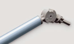 Inserte la varilla Qwik Switch en la unidad de cierre en el extremo del riel, donde el cielo raso se une con la pared. Gire la varilla, hacía la izquierda para abrir el cerrojo y bajar el riel para retirar la cortina.